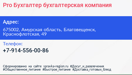 Pro-Бухгалтер, бухгалтерская компания по адресу 675002, Амурская область, Благовещенск, Краснофлотская, 49 в дальнейшем Организация, размещена в следующих категориях: