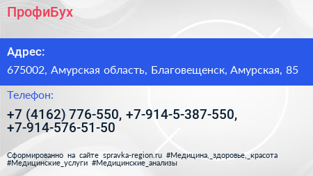 ПрофиБух по адресу 675002, Амурская область, Благовещенск, Амурская, 85 в дальнейшем Организация, размещена в следующих категориях:
