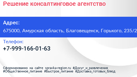 Решение, консалтинговое агентство по адресу 675000, Амурская область, Благовещенск, Горького, 235/2 в дальнейшем Организация, размещена в следующих категориях:
