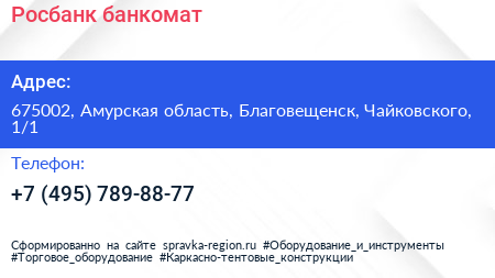 Росбанк, банкомат по адресу 675002, Амурская область, Благовещенск, Чайковского, 1/1 в дальнейшем Организация, размещена в следующих категориях: