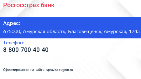 Росгосстрах банк по адресу 675000, Амурская область, Благовещенск, Амурская, 174а в дальнейшем Организация, размещена в следующих категориях: