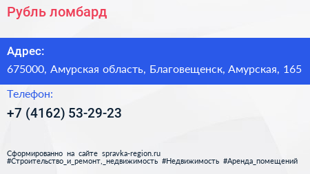 Рубль, ломбард по адресу 675000, Амурская область, Благовещенск, Амурская, 165 в дальнейшем Организация, размещена в следующих категориях: