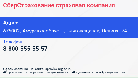 СберСтрахование, страховая компания по адресу 675002, Амурская область, Благовещенск, Ленина, 74 в дальнейшем Организация, размещена в следующих категориях: