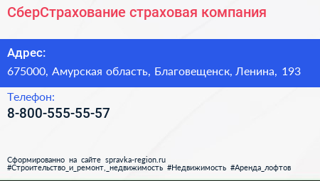 СберСтрахование, страховая компания по адресу 675000, Амурская область, Благовещенск, Ленина, 193 в дальнейшем Организация, размещена в следующих категориях: