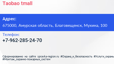 Taobao. tmall по адресу 675000, Амурская область, Благовещенск, Мухина, 100 в дальнейшем Организация, размещена в следующих категориях: