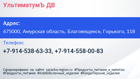 УльтиматумЪ-ДВ по адресу 675000, Амурская область, Благовещенск, Горького, 118 в дальнейшем Организация, размещена в следующих категориях: