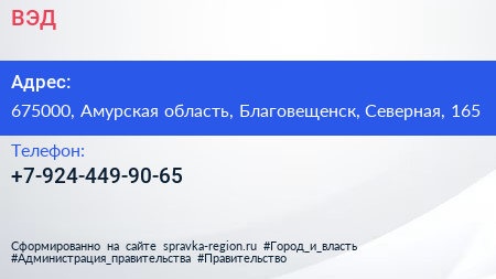 ВЭД по адресу 675000, Амурская область, Благовещенск, Северная, 165 в дальнейшем Организация, размещена в следующих категориях: