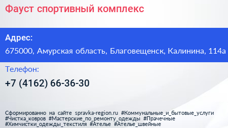 Фауст, спортивный комплекс по адресу 675000, Амурская область, Благовещенск, Калинина, 114а в дальнейшем Организация, размещена в следующих категориях: