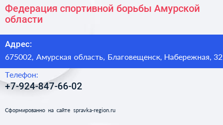 Федерация спортивной борьбы Амурской области по адресу 675002, Амурская область, Благовещенск, Набережная, 32 в дальнейшем Организация, размещена в следующих категориях: