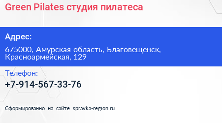 Green Pilates, студия пилатеса по адресу 675000, Амурская область, Благовещенск, Красноармейская, 129 в дальнейшем Организация, размещена в следующих категориях: