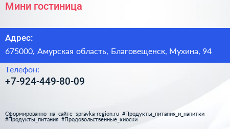 Мини-гостиница по адресу 675000, Амурская область, Благовещенск, Мухина, 94 в дальнейшем Организация, размещена в следующих категориях: