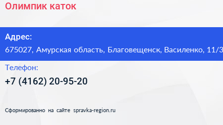 Олимпик, каток по адресу 675027, Амурская область, Благовещенск, Василенко, 11/3 в дальнейшем Организация, размещена в следующих категориях: