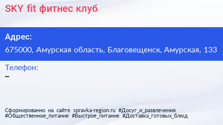 SKY fit, фитнес-клуб по адресу 675000, Амурская область, Благовещенск, Амурская, 133 в дальнейшем Организация, размещена в следующих категориях: