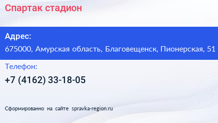 Спартак, стадион по адресу 675000, Амурская область, Благовещенск, Пионерская, 51 в дальнейшем Организация, размещена в следующих категориях: