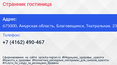 Странник, гостиница по адресу 675000, Амурская область, Благовещенск, Театральная, 23 в дальнейшем Организация, размещена в следующих категориях: