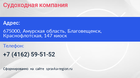 Судоходная компания по адресу 675000, Амурская область, Благовещенск, Краснофлотская, 147 киоск в дальнейшем Организация, размещена в следующих категориях: