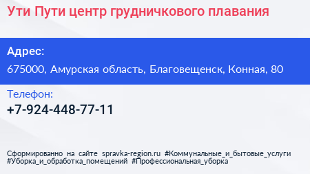 Ути-Пути, центр грудничкового плавания по адресу 675000, Амурская область, Благовещенск, Конная, 80 в дальнейшем Организация, размещена в следующих категориях: