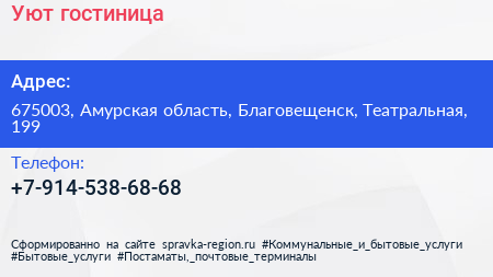 Уют, гостиница по адресу 675003, Амурская область, Благовещенск, Театральная, 199 в дальнейшем Организация, размещена в следующих категориях:
