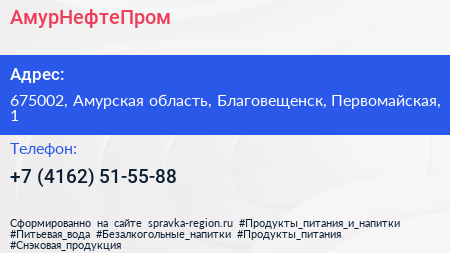 АмурНефтеПром по адресу 675002, Амурская область, Благовещенск, Первомайская, 1 в дальнейшем Организация, размещена в следующих категориях: