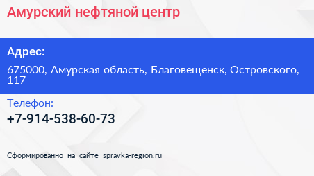 Амурский нефтяной центр по адресу 675000, Амурская область, Благовещенск, Островского, 117 в дальнейшем Организация, размещена в следующих категориях: