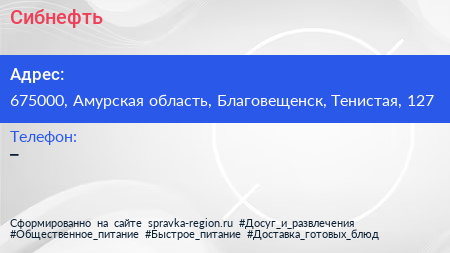 Сибнефть по адресу 675000, Амурская область, Благовещенск, Тенистая, 127 в дальнейшем Организация, размещена в следующих категориях:
