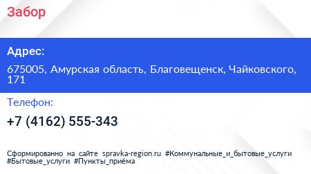 Забор по адресу 675005, Амурская область, Благовещенск, Чайковского, 171 в дальнейшем Организация, размещена в следующих категориях: