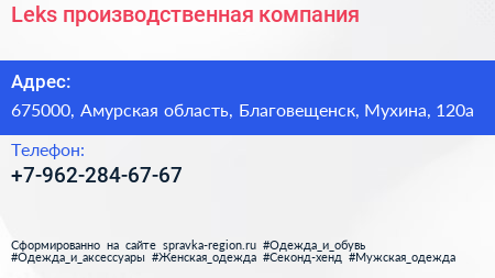 Leks, производственная компания по адресу 675000, Амурская область, Благовещенск, Мухина, 120а в дальнейшем Организация, размещена в следующих категориях: