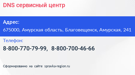 DNS, сервисный центр по адресу 675000, Амурская область, Благовещенск, Амурская, 241 в дальнейшем Организация, размещена в следующих категориях: