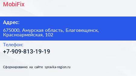 MobiFix по адресу 675000, Амурская область, Благовещенск, Красноармейская, 102 в дальнейшем Организация, размещена в следующих категориях: