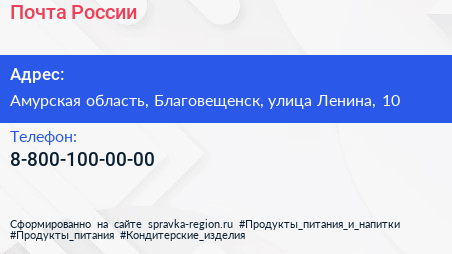 Почта России по адресу Амурская область, Благовещенск, улица Ленина, 10 в дальнейшем Организация, размещена в следующих категориях: