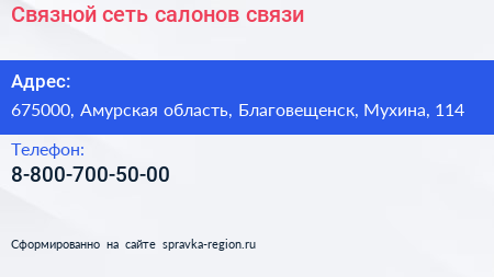 Связной, сеть салонов связи по адресу 675000, Амурская область, Благовещенск, Мухина, 114 в дальнейшем Организация, размещена в следующих категориях: