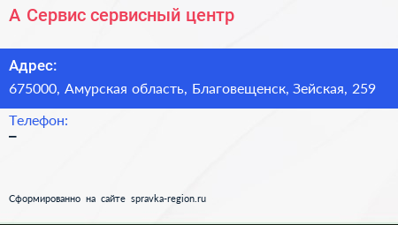 А-Сервис, сервисный центр по адресу 675000, Амурская область, Благовещенск, Зейская, 259 в дальнейшем Организация, размещена в следующих категориях: