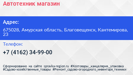 Автотехник, магазин по адресу 675028, Амурская область, Благовещенск, Кантемирова, 23 в дальнейшем Организация, размещена в следующих категориях: