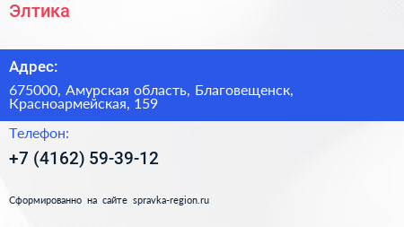 Элтика по адресу 675000, Амурская область, Благовещенск, Красноармейская, 159 в дальнейшем Организация, размещена в следующих категориях:
