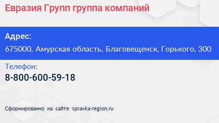 Евразия Групп, группа компаний по адресу 675000, Амурская область, Благовещенск, Горького, 300 в дальнейшем Организация, размещена в следующих категориях: