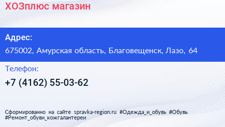 ХОЗплюс, магазин по адресу 675002, Амурская область, Благовещенск, Лазо, 64 в дальнейшем Организация, размещена в следующих категориях: