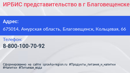 ИРБИС, представительство в г. Благовещенске по адресу 675014, Амурская область, Благовещенск, Кольцевая, 66 в дальнейшем Организация, размещена в следующих категориях: