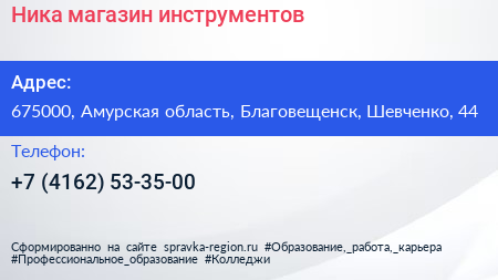 Ника, магазин инструментов по адресу 675000, Амурская область, Благовещенск, Шевченко, 44 в дальнейшем Организация, размещена в следующих категориях: