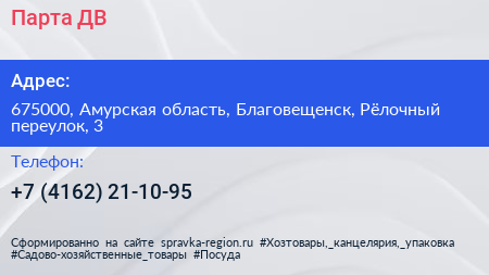 Парта ДВ по адресу 675000, Амурская область, Благовещенск, Рёлочный переулок, 3 в дальнейшем Организация, размещена в следующих категориях: