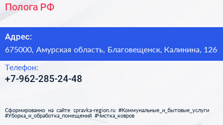 Полога.РФ по адресу 675000, Амурская область, Благовещенск, Калинина, 126 в дальнейшем Организация, размещена в следующих категориях: