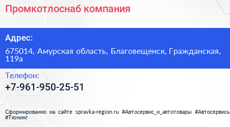 Промкотлоснаб, компания по адресу 675014, Амурская область, Благовещенск, Гражданская, 119а в дальнейшем Организация, размещена в следующих категориях: