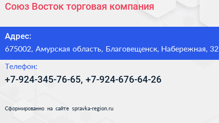 Союз Восток, торговая компания по адресу 675002, Амурская область, Благовещенск, Набережная, 32 в дальнейшем Организация, размещена в следующих категориях: