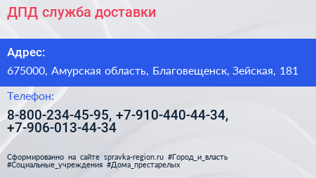ДПД, служба доставки по адресу 675000, Амурская область, Благовещенск, Зейская, 181 в дальнейшем Организация, размещена в следующих категориях: