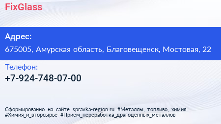 FixGlass по адресу 675005, Амурская область, Благовещенск, Мостовая, 22 в дальнейшем Организация, размещена в следующих категориях: