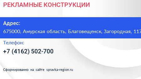 РЕКЛАМНЫЕ КОНСТРУКЦИИ по адресу 675000, Амурская область, Благовещенск, Загородная, 117 в дальнейшем Организация, размещена в следующих категориях: