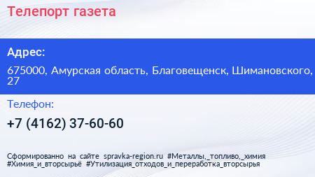 Телепорт, газета по адресу 675000, Амурская область, Благовещенск, Шимановского, 27 в дальнейшем Организация, размещена в следующих категориях: