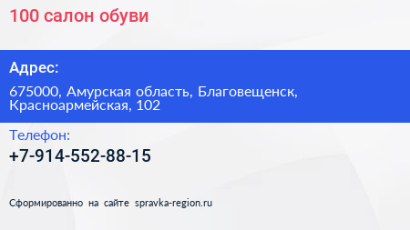 100%, салон обуви по адресу 675000, Амурская область, Благовещенск, Красноармейская, 102 в дальнейшем Организация, размещена в следующих категориях: