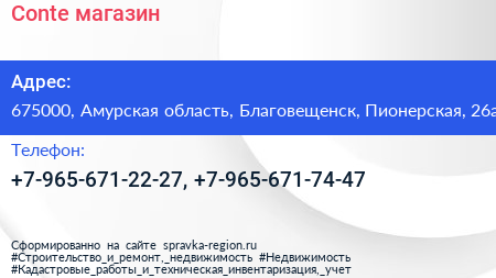 Conte, магазин по адресу 675000, Амурская область, Благовещенск, Пионерская, 26а в дальнейшем Организация, размещена в следующих категориях: