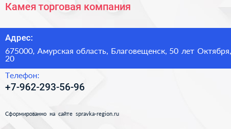 Камея, торговая компания по адресу 675000, Амурская область, Благовещенск, 50 лет Октября, 20 в дальнейшем Организация, размещена в следующих категориях: