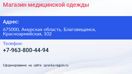 Магазин медицинской одежды по адресу 675000, Амурская область, Благовещенск, Красноармейская, 102 в дальнейшем Организация, размещена в следующих категориях: